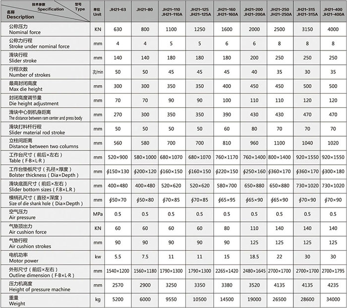 整機采用進口PLC集中控制,氣路選用進口安全雙聯(lián)閥控制,可實現(xiàn)點動、寸動,單次和連續(xù)沖壓,動作靈敏,穩(wěn)定可靠。